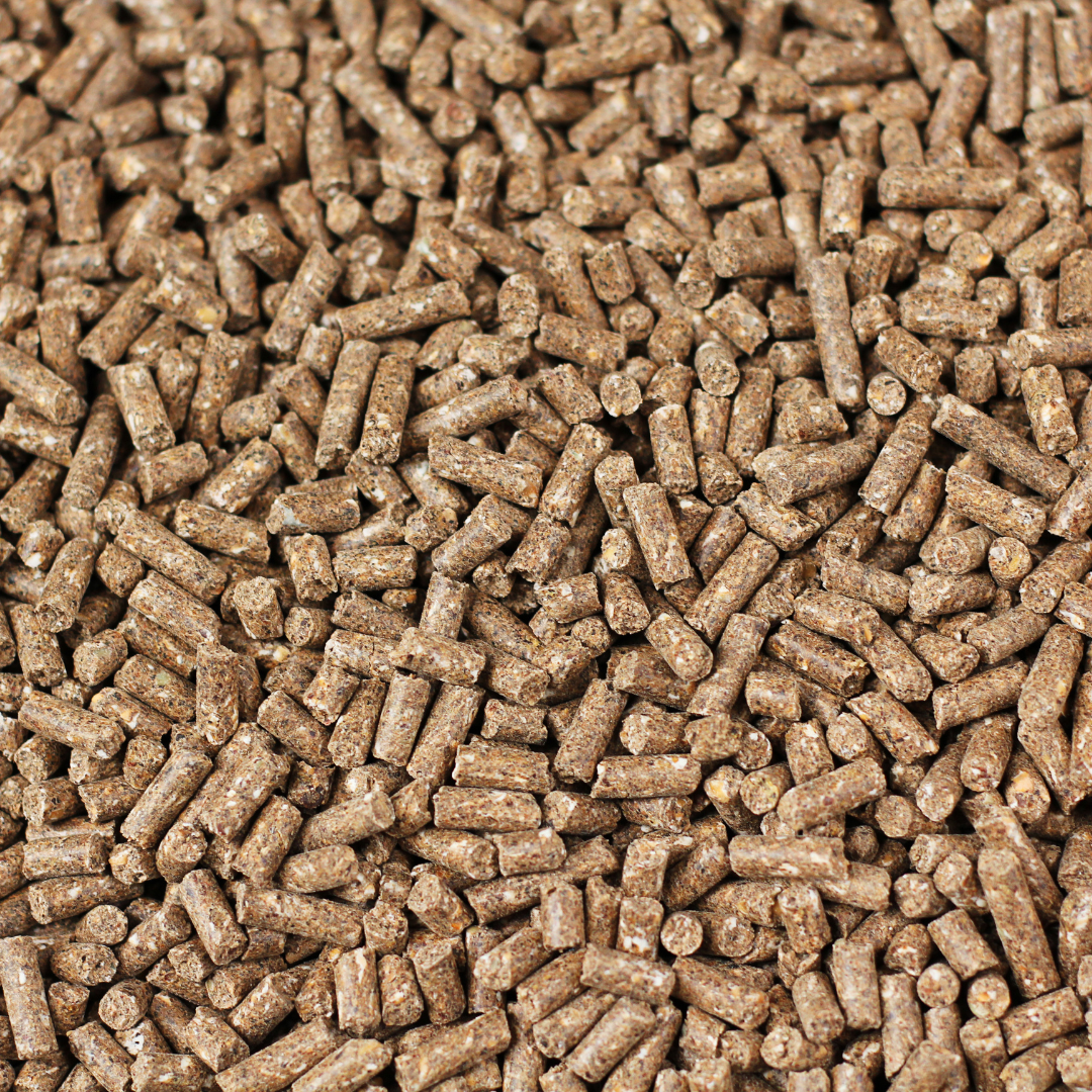 Feed is shipped in bags, bulk containers, or as loose pellets. Store in cool, dry, well-ventilated areas, protected from moisture, pests, and contamination.