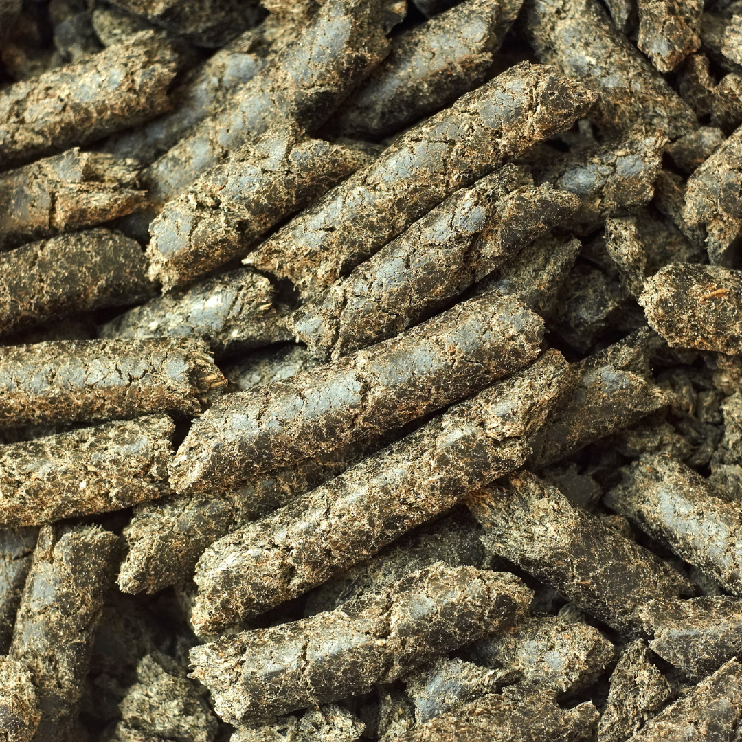 Sunflower pellets are shipped in bulk or bags. Store in dry, well-ventilated areas, protected from moisture to prevent mold and caking.